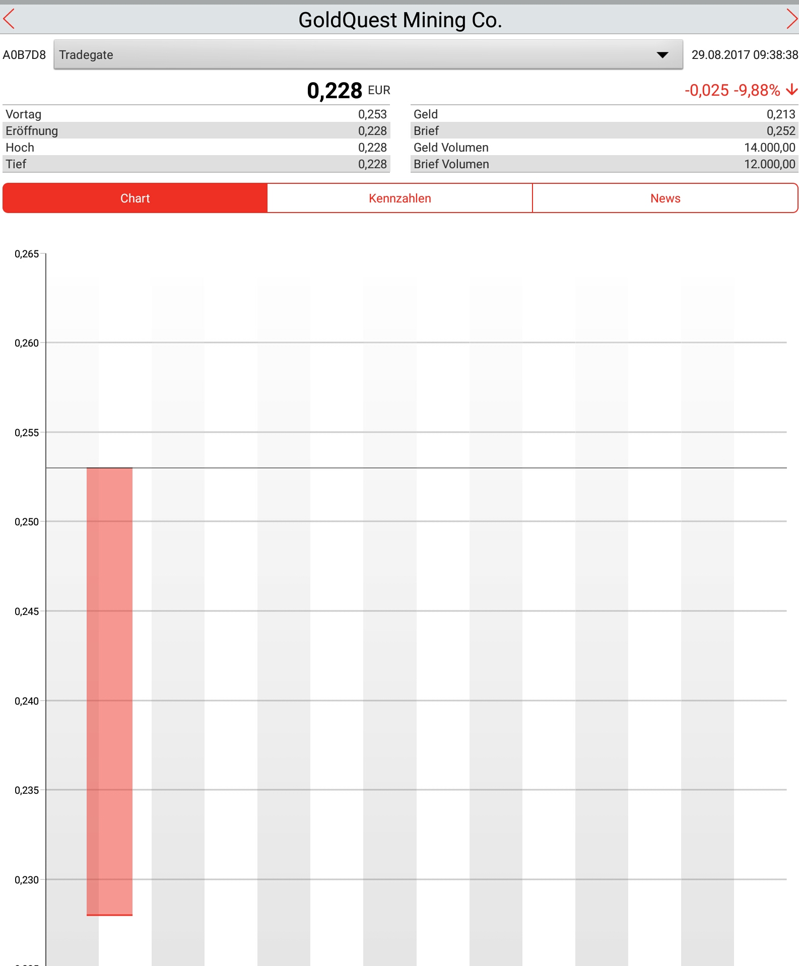 Wer noch nicht engagiert ist findet vermutlich bei 0,43 C$ einen guten Einstieg. Eine stärkere Korrektur würde mich überraschen, ist z. B. bei Veröffentlichung von schlechten Explorationsergebnissen aber möglich.