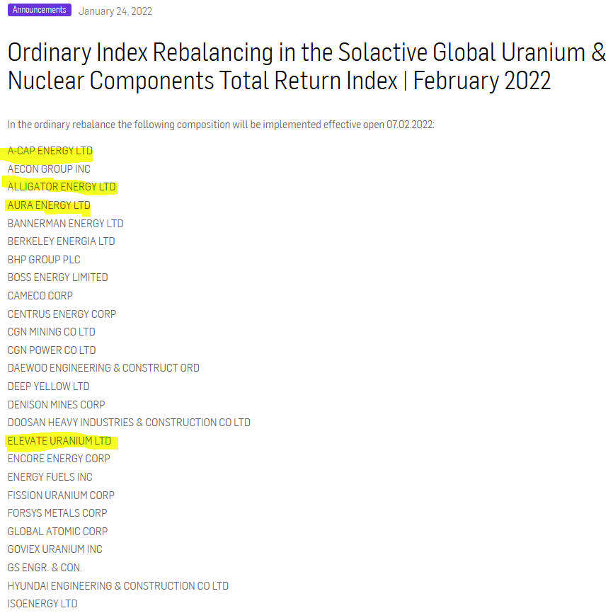 The new positions for URA are out. No weightings yet.