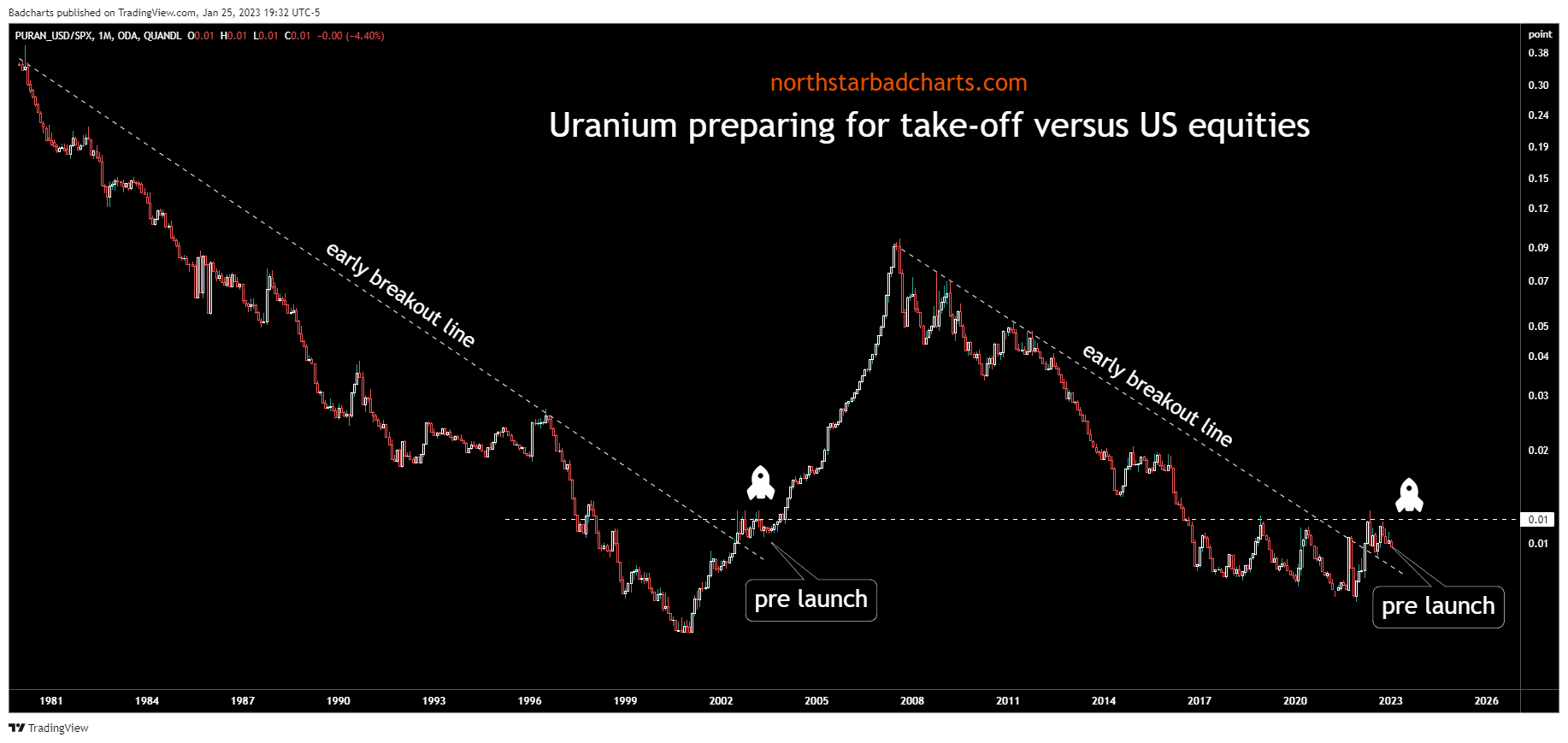 Ich denke, alleine die Tatsache, dass sich das Wort "Uranium" im Namen einer Aktie befindet, wird das eine oder andere % mehr im Bullenmarkt bringen.