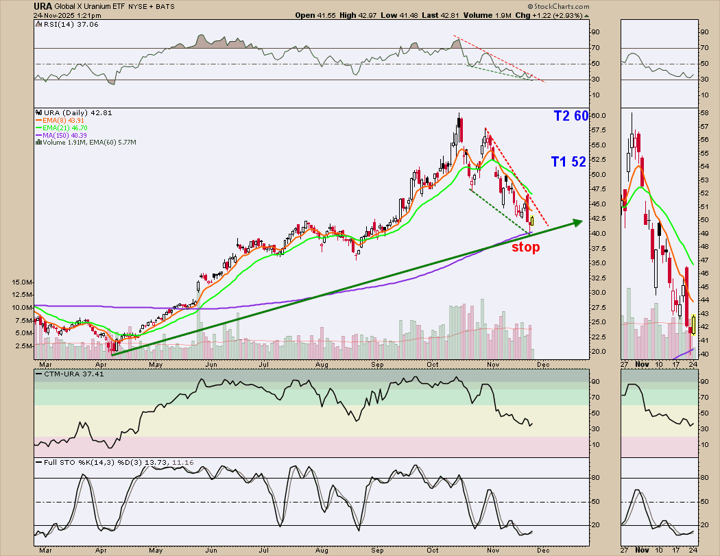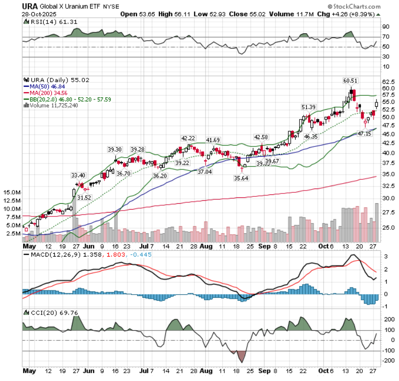 Die kurze heftige Korrektur der Uranaktien könnte bereits beendet sein, jedenfalls erholten sich die U Aktien gestern beträchtlich: Der URA stieg um 8.3 %.