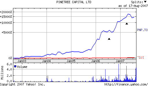 Please don't underestimate what happened the last few weeks. Pinetree used margin to buy stocks and if they had margin calls the decline in portfolio value is huge. With about $315 mln of total liabilities and $809 mln invested (jun 30), a decline of 60% portfolio value is enough to whipe out Pinetree.