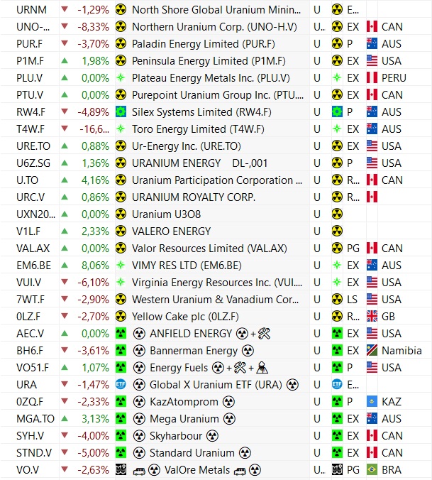Uranaktien: Minen, Explorer, Produzenten, Anwender