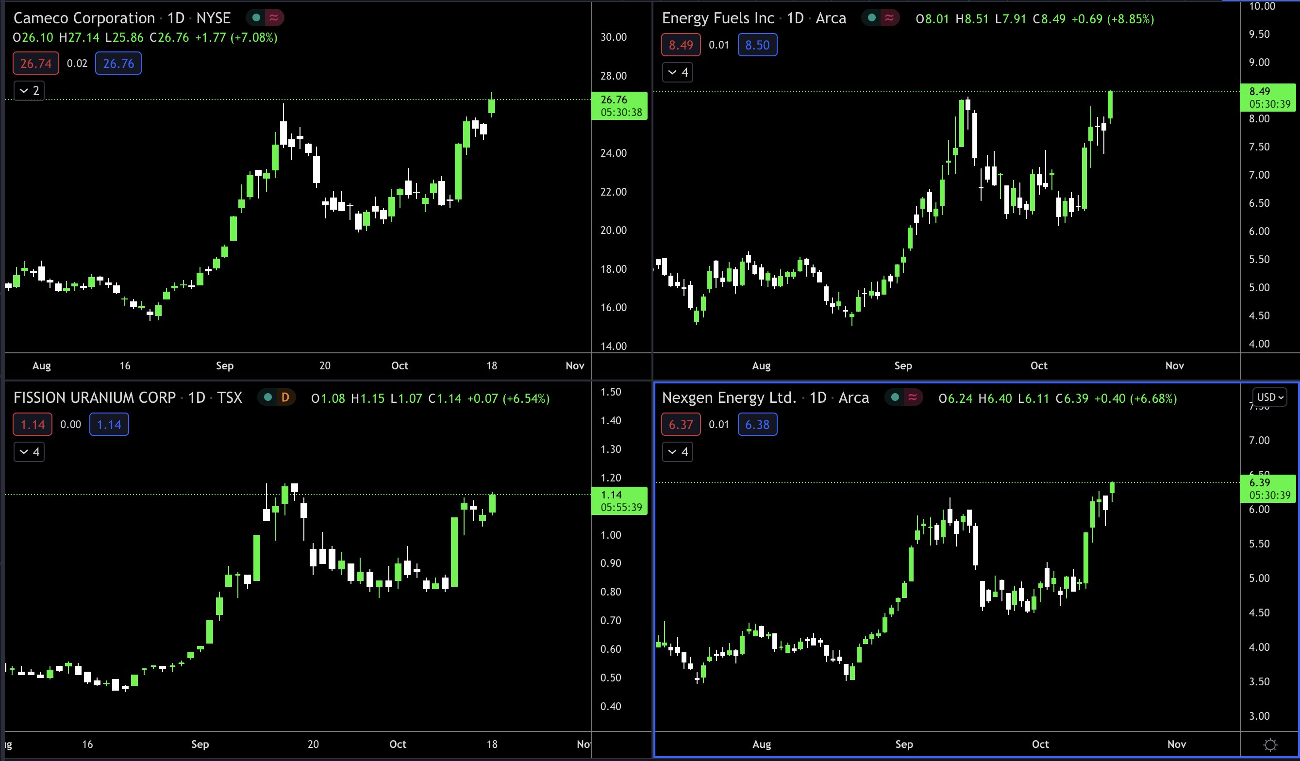 Habe mir heute aufgrund einer Erleuchtung Canalaska gegönnt, obwohl ich den Uranbestand eigentlich nicht mehr vergrössern wollte. Ist halt schon weit gelaufen jedoch meine ich dass der Gesamtmarkt noch weiter läuft.