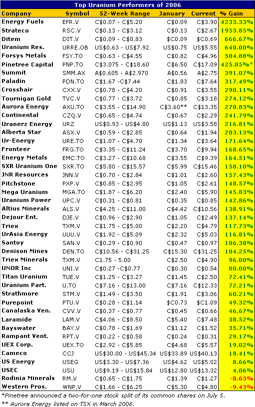 Meine 5% Investition vom Depotwert in Uranminen stieg gesamt auf 41% Gewinn in 2006.