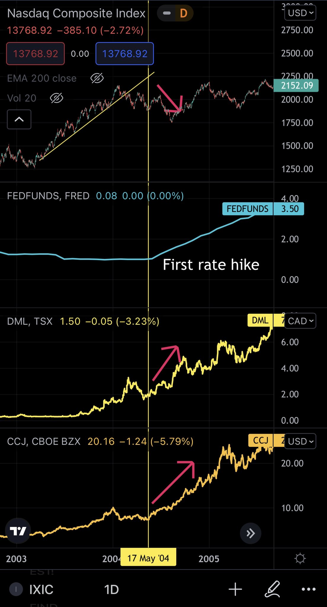 Die Uranaktien fallen in einem seltenen Ausmaß denke ich; U Schwergewicht UEC hat sich im Kurs vom Hoch mehr als halbiert, UUUU fast halbiert, viele inzwischen weit unter der EMA 200.