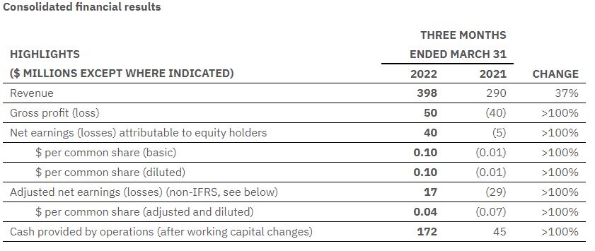 - Nettogewinn von 40 Mio. US-Dollar; bereinigter Nettogewinn von 17 Mio. US-Dollar: Die Ergebnisse des ersten Quartals sind auf normale vierteljährliche Schwankungen bei den Vertragslieferungen und die fortgesetzte Umsetzung unserer Strategie in einem Markt zurückzuführen, der sich unserer Meinung nach in einem frühen Stadium des Übergangs befindet. Der bereinigte Reingewinn ist eine Non-IFRS-Kennzahl, siehe unten.