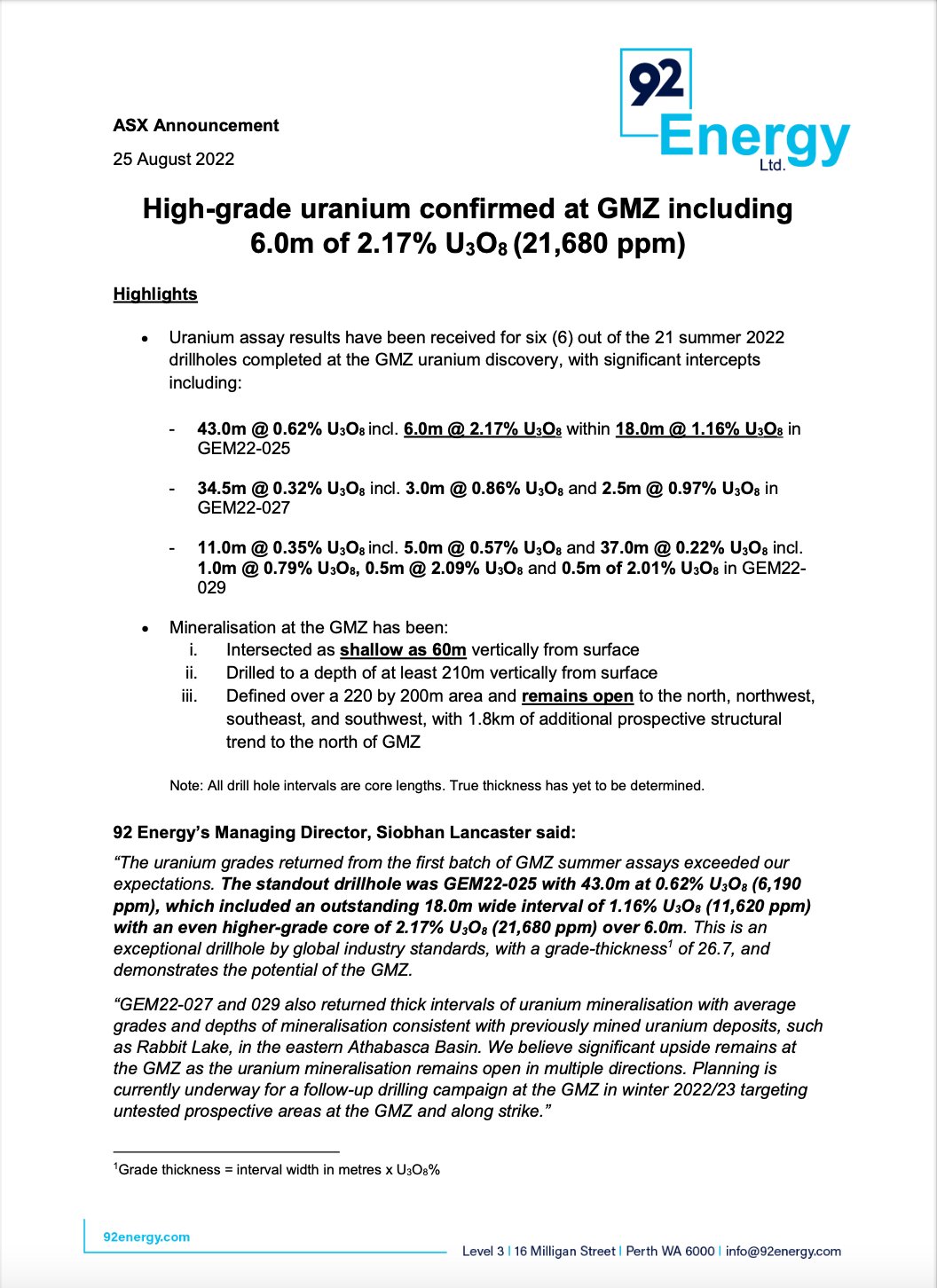 • Goviex Uranium. Netter, günstiger Explorer, der noch ziemlich unter dem Radar läuft.