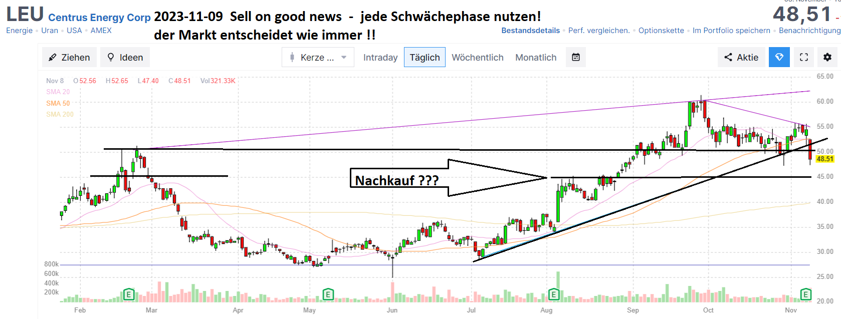 • Sell on good news kenne ich noch von früher......verschleudere on good news ist mir neu.......Centrus ähnlich wie Calibre (okay, andere Sektor, grundsätzlich von der Thematik her aber wuscht) mit guten Zahlen und wird filetiert......12% runter, unfassbar, werde hier auch aufstocken, warte aber noch ein paar Tage zu....