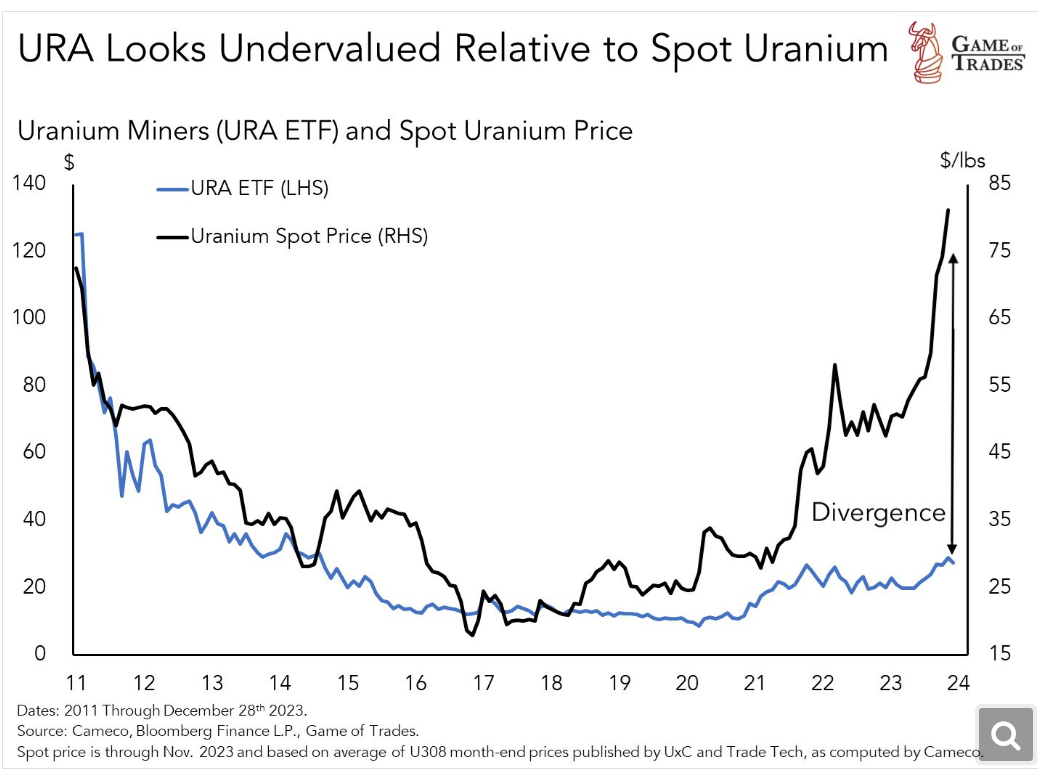 Imo cameco (aswell as Kazatomprom) should be avoided as they are effectuvely net short uranium due to contract too much/producting too little.