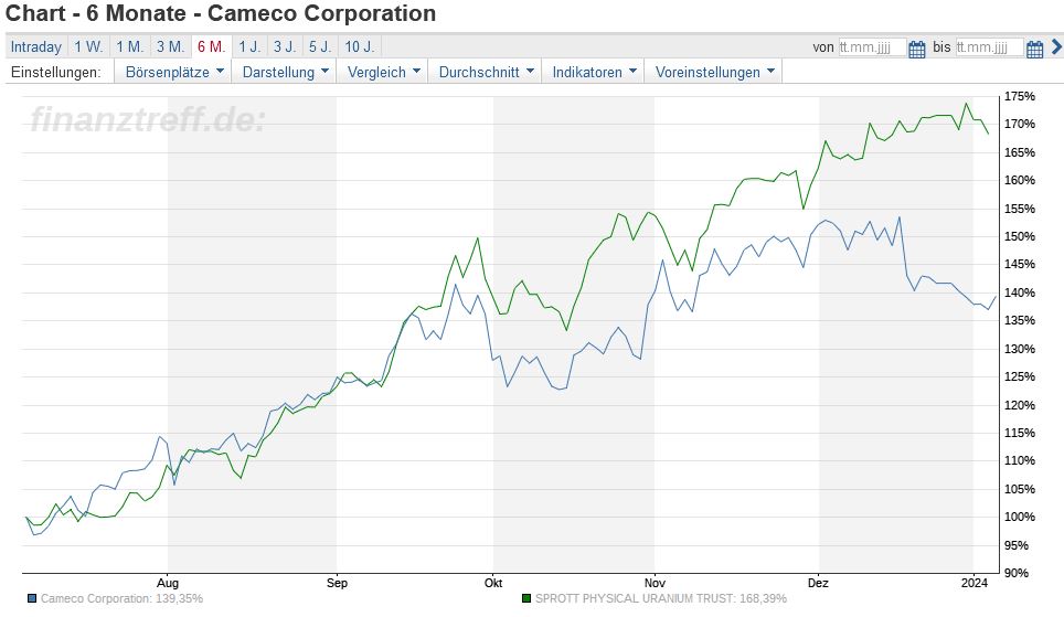• Cameco hat einen deutlichen Abschlag zum Sprott Uranium Trust und ich denke, dass Cameco dies aufholen wird.