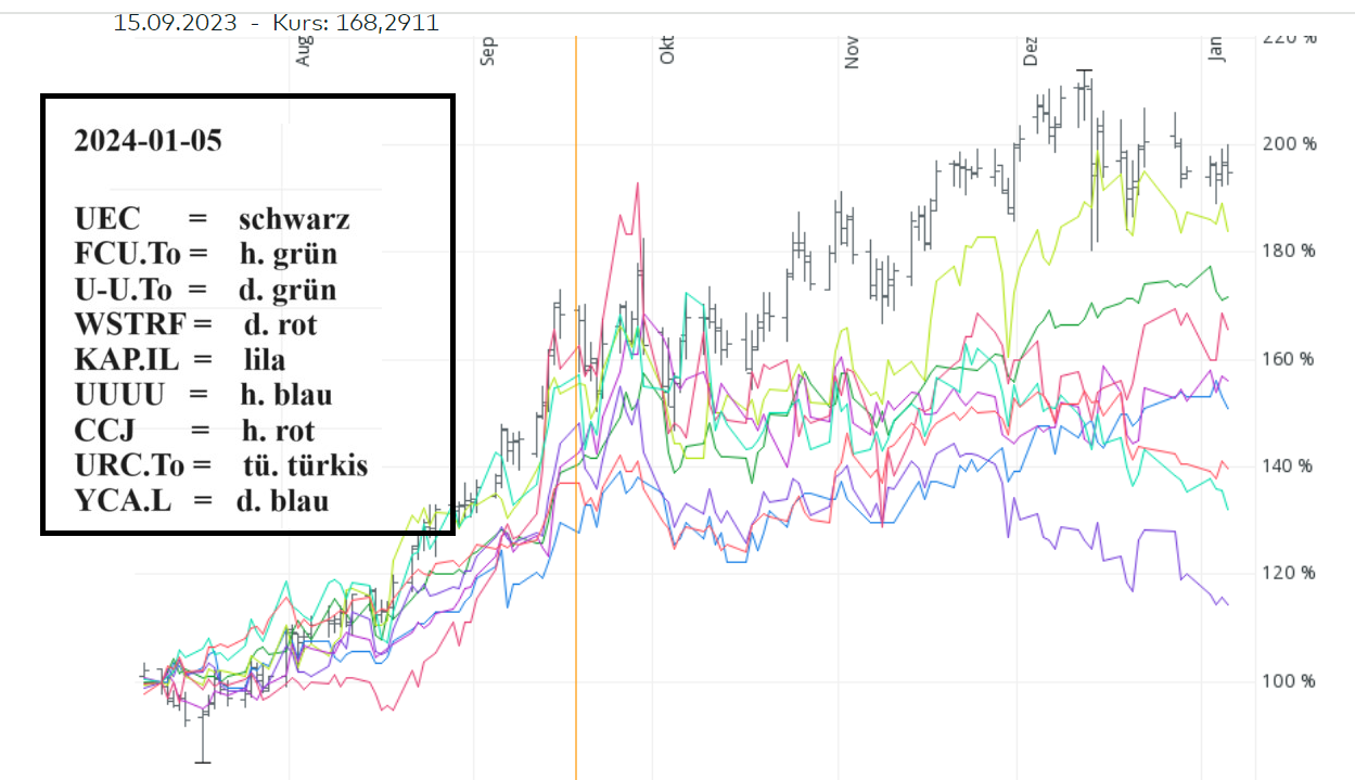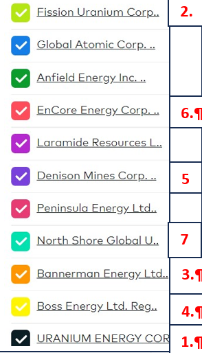 Kurios, daß zwar die US Aktie UUUU rd 7 % abgibt, die bekannten Großen wie UEC oder NXE aber nur etwas leichter sind..