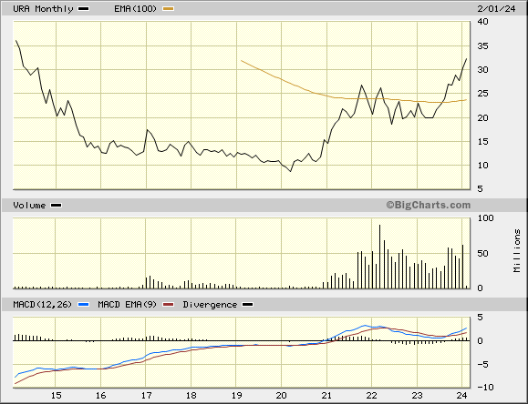 Gestern erreichten ebenfalls mehrere Uranaktien Mehrjahreshochs, aus dem Depot zB. MGA, NXE, UEC und DYLLF.