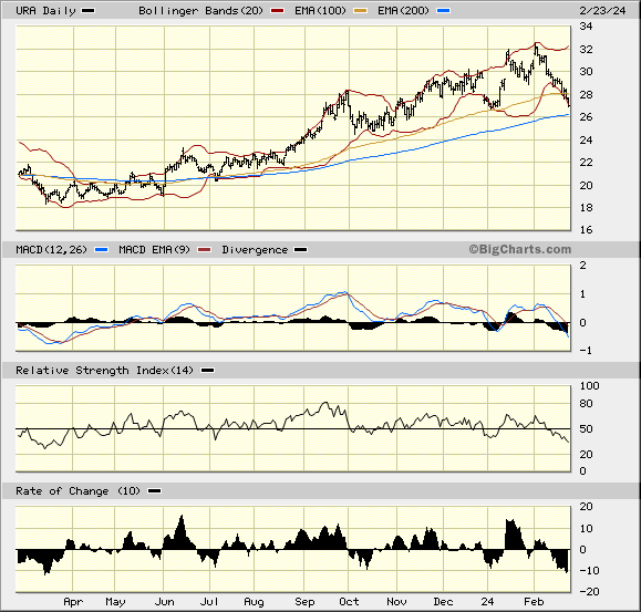 Investor buying of physical uranium by publicly-traded funds and hedge funds represented nearly 15 million pounds of uranium oxide concentrate (U3O8), or about 26% of the total traded on the spot market in 2023, according to consultancy UxC.