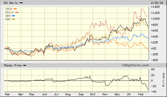 This was down from 22 million pounds of investor buying in 2022 as higher prices in 2023 meant each dollar bought fewer pounds of uranium.