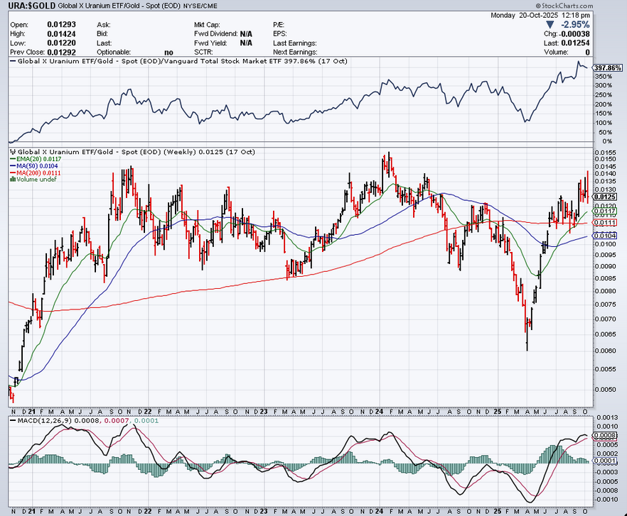 Unterdessen haben Uranaktien eine beeindruckende Performance erzielt, wobei der Sprott Uranium Miners ETF in diesem Jahr um über 50 % gestiegen ist. Laut Sprott haben Uran und damit verbundene Aktien in den letzten fünf Jahren andere Anlageklassen deutlich übertroffen." ![]()