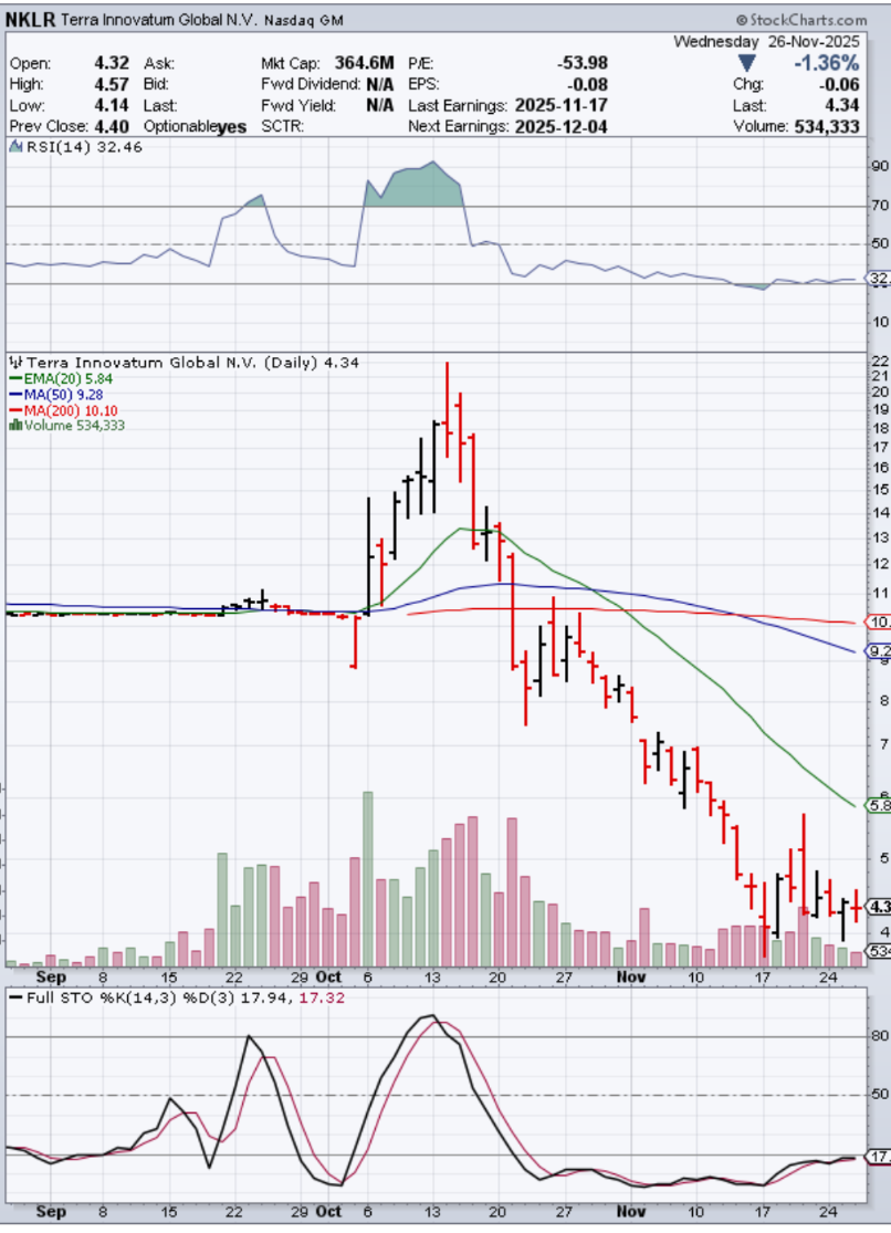 Wenn ich zum Vergleich eine NuScale oder Oklo ansehe, sieht man, dass die ebenfalls zu Beginn stark gefallen sind und anschließend erst den Turbo gestartet haben. Wenn ich vom Hoch bei 31,50 USD ausgehe, hätten wir zum Tief vom 25.11. bei 7,65 USD bereits über 75% korrigiert.