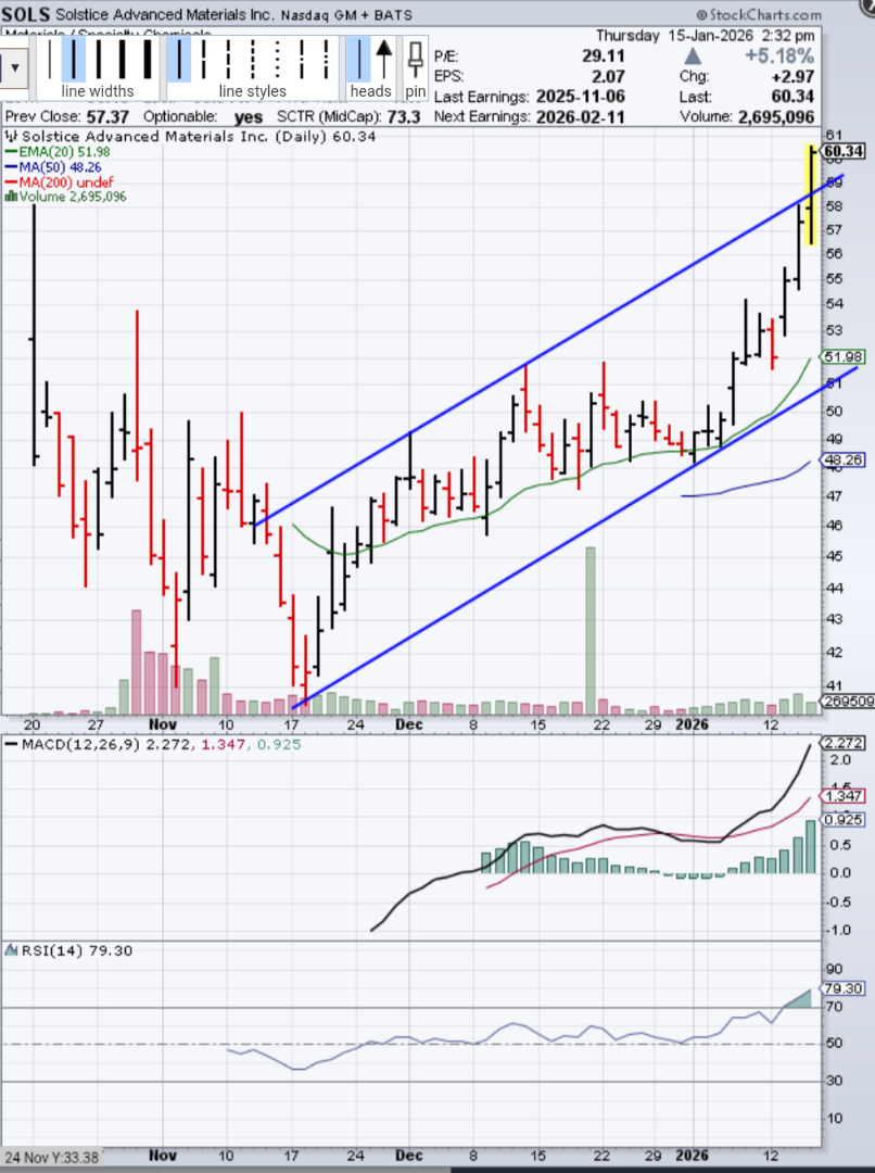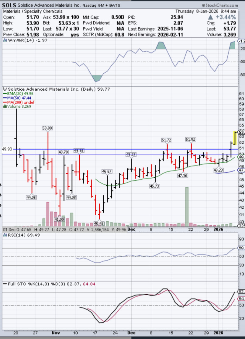 Solstice Advanced Materials läuft als Spezialchemie-Hersteller. Verhält sich aber die letzten Tage auffällig anders als die paar wenigen Chemieaktien auf meiner Watchlist.