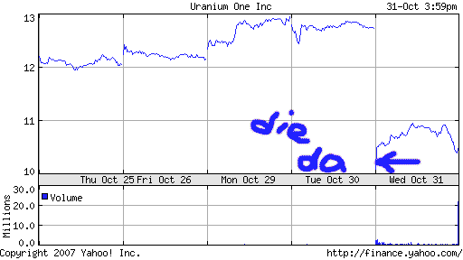 Bei URE mach ich mir keine Sorgen. hab die erste Position zu 3 CAD$ gekauft und hab noch ein Stinkbid im Markt. URE hat durch die letzte Finanzierung (insg. 82 Mio. CAD$, 4,75 je Aktie!) ca. 88 Mio. Cash in der Kasse, super Gebiete (Wyoming) und ein erstklassiges Management. Zum jetzigen Kurs würd ich aber auch ohne zu zögern kaufen, aber 1-2 Wochen versuch ich sie noch günstiger aufzustocken.