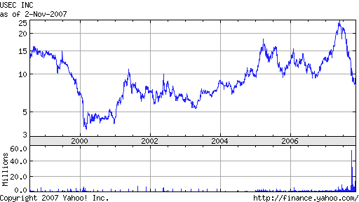 Habe auch USEC (USU) gekauft, am 23.10. für 8,49 USD, ca. 2 % vom Depot. Hätte ich noch etwas billiger haben können, sieht aber trotzdem gut aus.