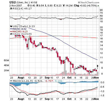 Habe auch USEC (USU) gekauft, am 23.10. für 8,49 USD, ca. 2 % vom Depot. Hätte ich noch etwas billiger haben können, sieht aber trotzdem gut aus.