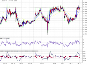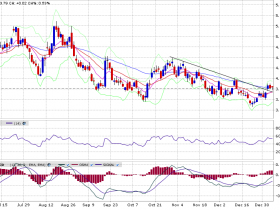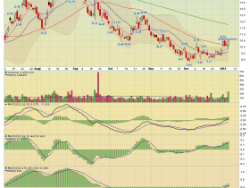 Ausbruch aus dem Abwärtstrend, und nun Konsolidierung, oberhalb des 9 und 20 MA. Teilweis kommt bereits der 50MA als Widerstand.
