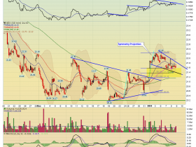 • Gestern enttäuschender Tag. Goldaktien deutlich als Underperformer aufgefallen. Für mich etwas überraschend, da in den Tagen vorher Gold und Silber underperformten und Goldaktien Stärke zeigten. Noch immer ist das bullische Wedge intakt, aber die Schwäche gestern und auch das Unterschreiten einiger MA's haben mich dazu bewogen, die Hälfte rauszuschmeissen aus dem Tradingdepot. Dank ANV dies insgesamt etwas plus minus 0.Falls das Wedge nach oben verlassen wird, würde ich sofort wieder rein. Bei einem weiteren Abrutschen ab hier kann es aber auch schnell nach unten gehen.