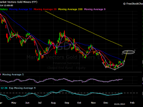 Goldaktien wurden somit (für mich) aus heiterem Himmel abwärts unter den 9 MA und unter die Gap-Unterstützung gedrückt und so schloss man auch am Donerstag.