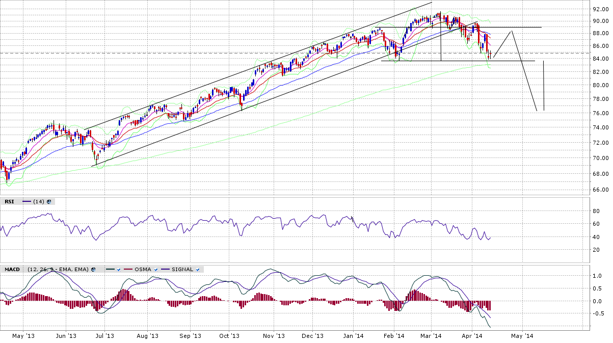 Sichtbar ist dieser Kontrollverlust imho bei den US-Aktien: siehe Chart QQQ (Nasdaq ETF). Nach 5 Jahren Bullenmarkt ist die Zeit für den Bären gekommen. Im Gegensatz zu Böden brauchen Tops eine Weile. Weshalb ich mir gut vorstellen kann, dass bis in den Mai hinein nochmals ein Rally gestartet wird, das die Bullen allerdings verbrennen wird. Nachfolgende Korrektur sollte dann 20 % ausfallen....im Minimum. Evt wird ein richtiger Bärenmarkt draus.