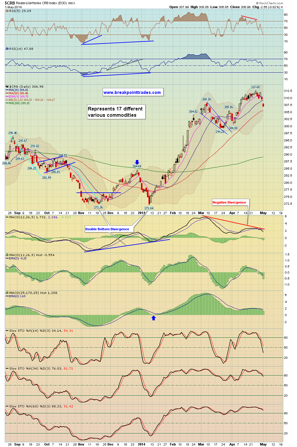 Rohstoffe: Chart 3. Vorsicht. Sieht nicht bullisch aus. Auch z.B crude und natgas nicht gut. Die Charts von Gold und Silber sehen schon gar nicht gut aus.