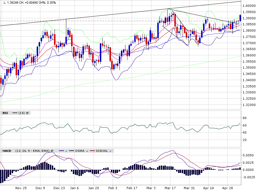 Der Euro stärkt sich weiter. Das sieht noch immer gut aus und unterstützt auch meine Vermutung, dass Aktien noch was zu bieten haben kurzfristig.... auch wenn der DAX heute morgen wieder etwas unter die Räder gekommen ist.... die Amis, deren Währungsabwertung planmässig weiter läuft, werden noch ein paar Tage freudig die Märkte aufkaufen