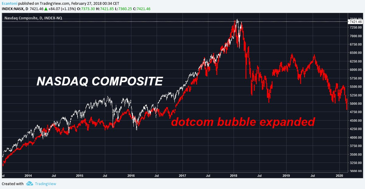 Könnten, müssen aber nicht. Wenn ich Nasdaq anschaue (Chart 2 QQQ weekly), da wurde nach dem Februar Flashcrash im März bereits wieder neue Highs gemacht, allerdings mit deutlicher Divergenz. Dies würde grundsätzlich schon mal reichen für eine klassische Trendwende. Da andere Indizes aber keine neue Highs machten, würde ich eben nochmals einen letzten Move nach oben mit leicht höherer Wahrscheinlichkeit einstufen als eine bereits erfolgte Trendwende. Das grosse Geld wird aber nicht mehr lange gemacht werden können mit Aktien, und die Fallhöhe ist gigantisch.