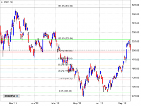 So, die Korrektur hat eingesetzt. Bei Goldaktien teilweise heftig, teilweise gar nicht. Der Gesamtmarkt hält sich immer noch gut. Der Euro im leichten Rückwärtsgang. Insgesamt sieht es "nur" nach Korrektur aus. Trotz den früher erwähnten Divergenzen und dunkelgelb blinkenden Warntafeln gehe ich zum jetzigen Zeitpunkt davon aus, dass es den Puppenspielern noch immer gelingt, Geld in Aktien zu schleusen. Ich selbst bin allerdings bereits nahe dran, an fallende Kurse zu glauben, aber eben noch nicht ganz. Apple z.B, das grosse Zugpferd der aktuellen Hausse, hat starke negative Divergenzen im Wochen- und Tageschart. Die Zeit wäre mehr lals reif für einen Einbruch, aber dies bedeutet halt nicht automatisch tiefere Kurse, insbesondere in der aktuellen Wahlkampf und QE III-Situation.