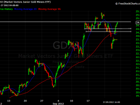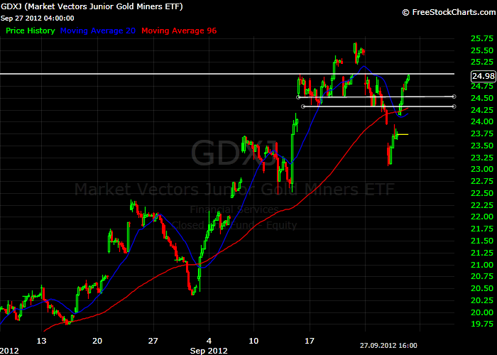 Nun hat sich im Verlauf des Tages alles gedreht, Shorties müssen eindecken, und es sieht sehr schön aus auch für Goldaktien, Gap up z.B bei GDX und GDXJ.