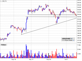 Im übrigen würde ich mich freuen, Meinungen über den Gesamtaktienmarkt zu hören. Ich meine, wir sind an einem Toppingprozess, der sich aber noch etwas hinziehen wird. Wenn ich aber den Chart von Apple, dem Vorreiter dieses Bullmarktes, anschaue, dann zeigt sich, dass die Divergenzen im Wochenchart sich auswirken und Apple einen sehr schwachen Oktober hinlegt. Möglich, dass Apple gar bereits das Top gesehen hat?