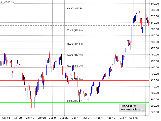 Mir sind solche saftigeren Korrektur-Tage wie heute lieber als langatmige Seitwärtskorrekturen. Denke, dass wir schon jetzt bzw. in Kürze bei einem HUI von 480, spätestens 450 (falls wir überhaupt dorthin noch mal kommen) schöne Nachkaufkurse sehen.