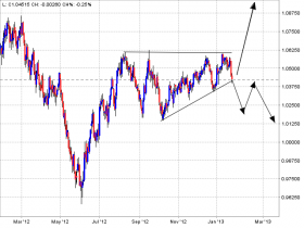 Meine Prognose: Falls nix passiert, dann leichtes Hochdriften. Sollte aber bad news kommen (Fiscal Cliff oder so) kann es schnell nach unten gehen. Blöde Situation: Wohl leicht bessere Chancen für höhere Kurse, aber mehr Kursgewinne/-verluste möglich, wenn es runter geht.