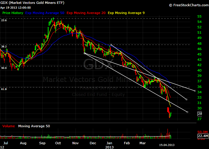 Gold und Silber mit einem guten Tag, Goldaktien wollen nicht. Habe meien Tradingpositionen ausgedünnt. Noch immer könnte dies alles eine Bärenflagge sein, auch wenn bei Goldaktien ein Boden auch schon drin sein könnte. So oder so muss es nächstens einen Move geben. Ihc traue der Sache nicht so richtig, hätte heute eigentlich mit der schönen Vorgabe von Gold und Silber einen Ausbruch nach oben erwartet. Dieser ist bisher augeblieben. Die relative Schwäche von Goldaktien erhöht die Chance auf einen weiteren Taucher. Ich gehe erst wieder in die Vollen, wenn der GDX nach oben wegdreht (über 30 bis 30.30). Die GDX/GLD Ratio bietet gute Hinweise,ob der Markt reif ist für ein Feuerwerk. Dies ist bisher nicht der Fall, noch kein Bruch erkennbar. Bei einem Bruch der Trendlinie ist ebenfalls long Goldaktien angesagt.