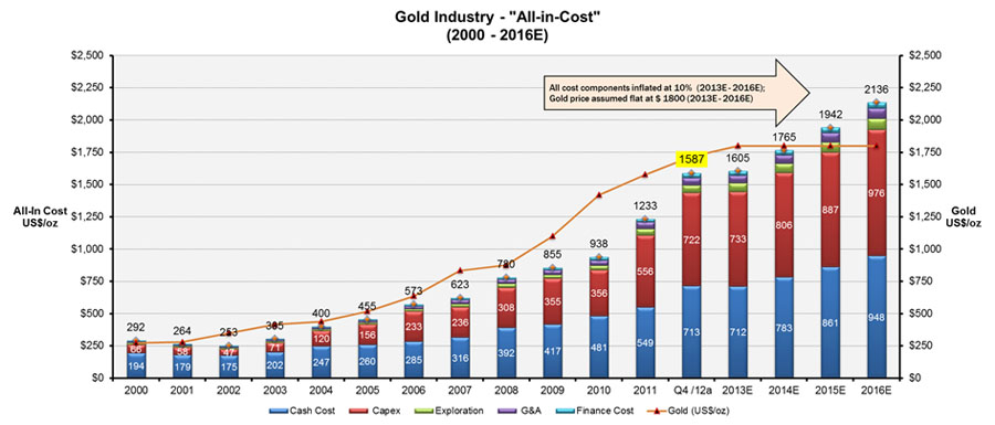 2. Die Margen werden weiterhin sinken: Produktionskosten werden weiterhin aus dem Ruder laufen, Gold und andere Metalle haben ihre Talfahrt noch nicht abgeschlossen.