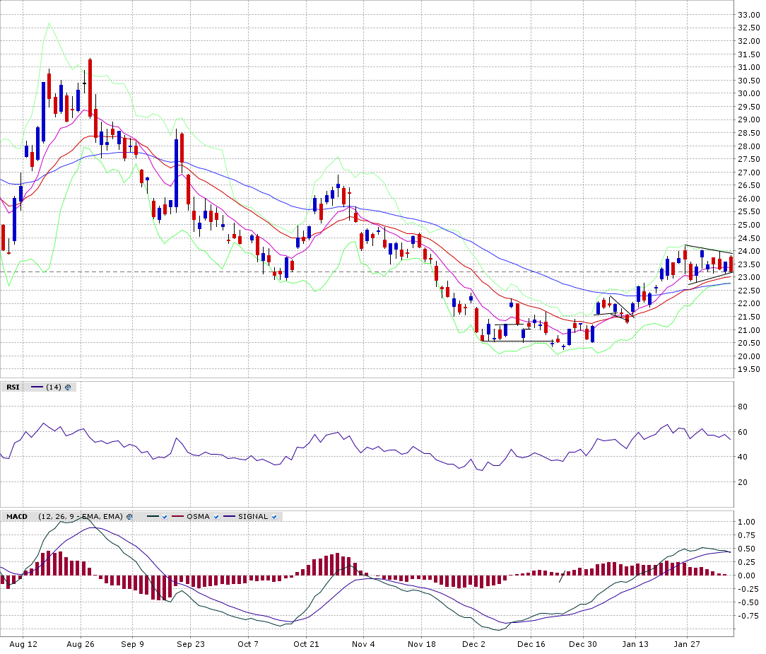 Mittleweile denke ich, dass die Chancen auf eine Auflösung des Dreieckes nach oben recht gut stehen. Insofern bin ich recht optimistisch für Gold- und Silberaktien. Das schöne ist, dass eine Auflösung dieses Chartbildes bald kommen muss und auch schnell auf die eine oder andere Seite reagiert werden kann.