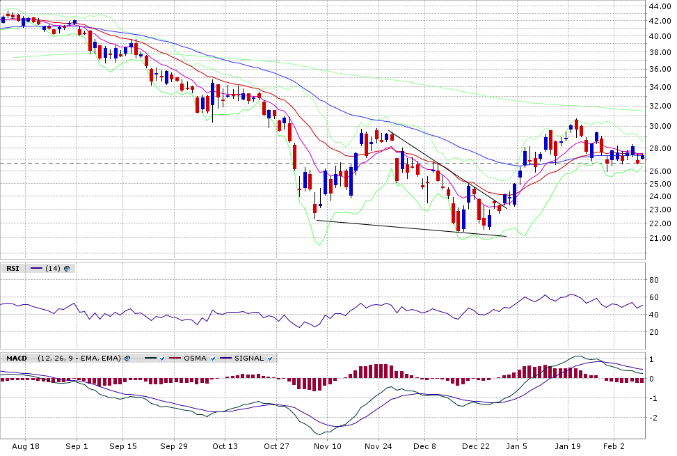 LMI sieht wirklich sehr hässlich aus. Kerzen sehen noch immer grottenschlecht aus. Immerhin sind die Divergenzen offensichtlich und der aktuelle Kurs hat sich recht entfernt vom 9 MA. Schön wäre jetzt ein grosser Auswascher und/oder eine schöne Umkehrkerze. Vielleicht schliesse ich mich den mutigen Käufern auch noch an, aber noch nicht jetzt......