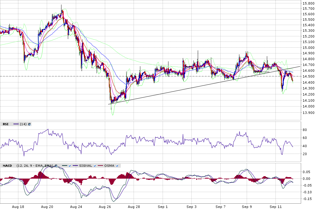Grundsätzlich würde ich gerne wieder zukaufen, aber die Charts geben aus meiner Sicht nichts her für eine Longeinstieg. Sowohl Silber als auch Gold könnten hier drehen, da Unterstützung und positive Divergenzen, aber da die Banker letzte Woche ganz offensichtlich den Sektor gezielt runterdrückten, kann ich mir gut vorstellen, dass diese Manipulationen noch nicht zu Ende sind. Zuerst will ich einen Boden sehen....