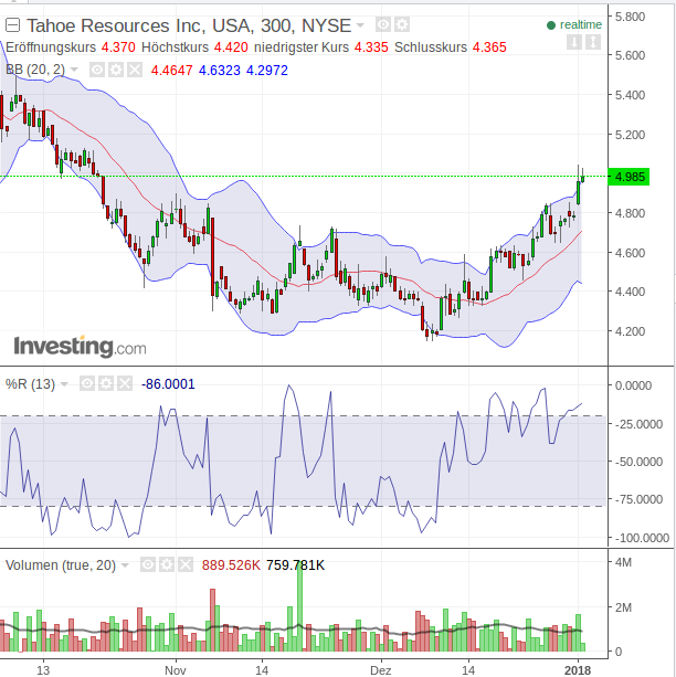 Damit nähert sich Tahoe wieder seinem Tief bei 4,24 US $. Wer Nervenkitzel liebt, kann ja ein Trading versuchen. Allerdings ist es ratsam das nur über die amerikanische Börse und mit Stop-Loss zu machen.