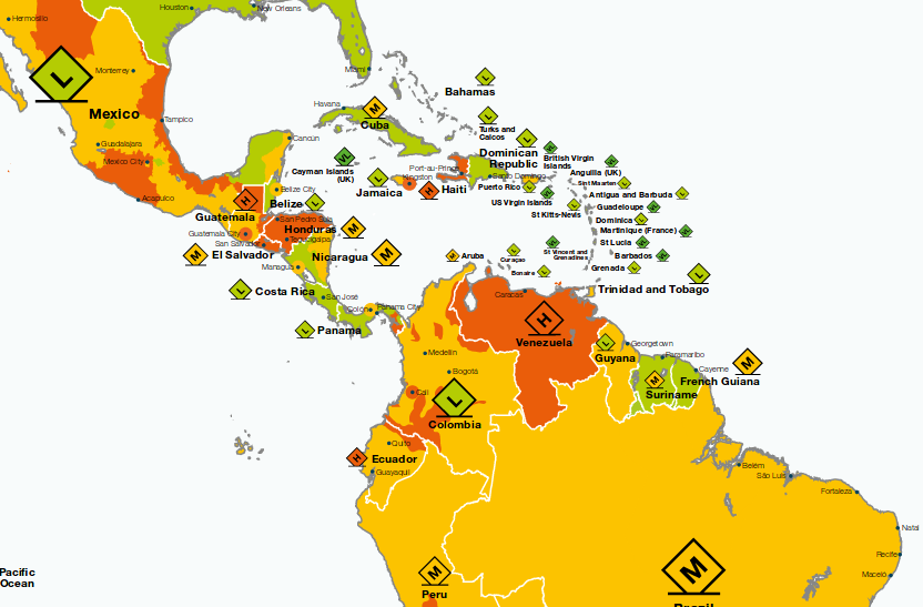 Ich hab zwar eine Farbschwäche, aber ist in der Karte nicht Honduras und El Salvador dunkelorange, bzw. hellrot und Guatemala überwiegend orange, wie fast alle Länder in Südamerika?
