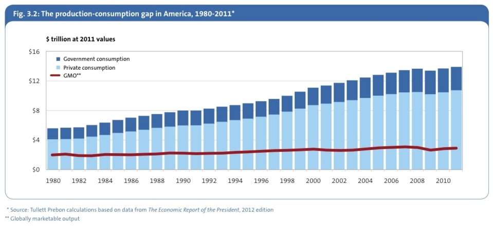 Aus der o.a. Studie ein doch nachdenkenswerter Langzeitchart. Hier wird die Ursache der ungeheuren jahrzehntelangen Neuverschuldung der USA sichtbar: