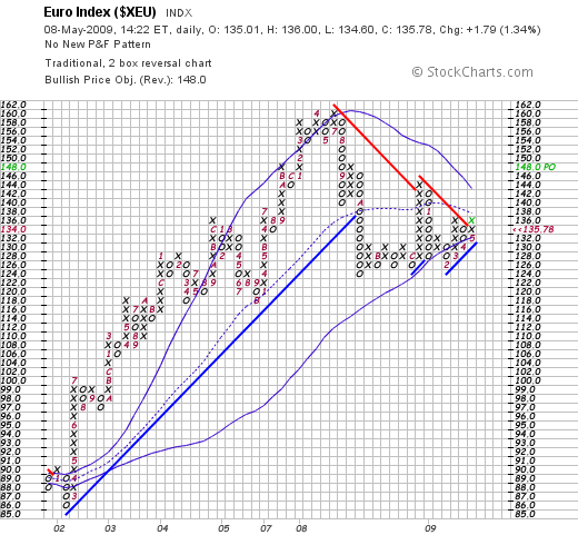 Interessant und ergänzend 2 P&F - Charts für den Euro und den USDX.