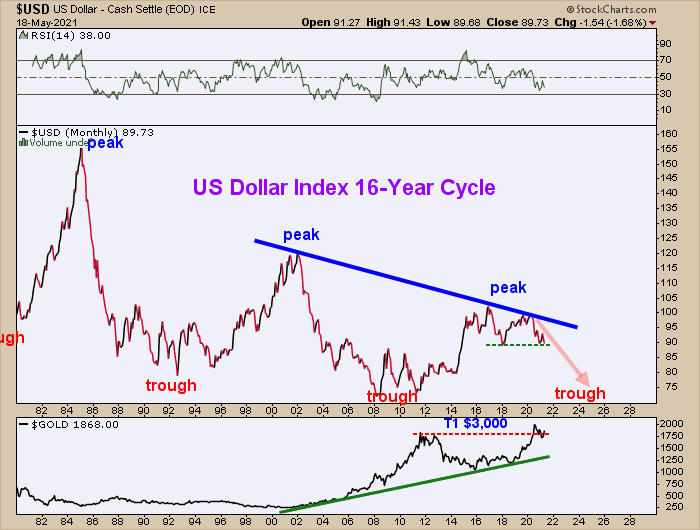 Nachdem das Goldfenster 1971 geschlossen wurde, sind die US-Bundes- und Gesamtverschuldung sowie die Geldmenge exponentiell parabolisch gestiegen und der Dollar, die Weltreservewährung, hat 98% verloren.