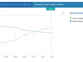 Im Oktober 2024 machte China 19 % des globalen BIP (KKP) aus, während die USA nur 15 % ausmachten..."