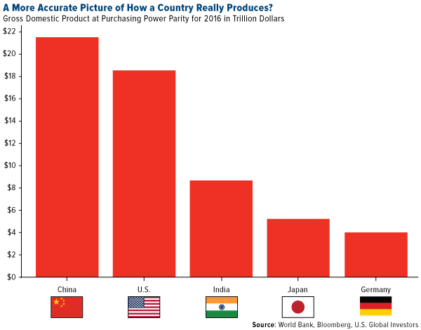 "Nominally, in dollar terms, there's no question that the U.S. is the biggest, but what researchers have done is adjust it to the purchasing power of the people living in that country. In other words, if products were to cost the same everywhere, what country produces the most? China is now FIRST....