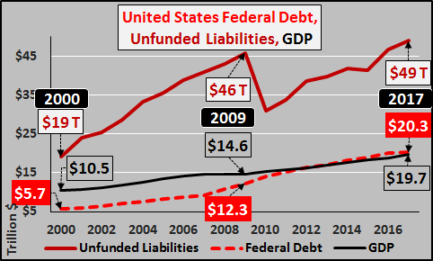 "The US Treasury is telling you that between the federal debt and unfunded liabilities, the US is $70 trillion in the hole and despite record tax revenue, record stock and real estate valuations...the US is bankrupt. Of course, the US can never "technically" go bankrupt as it will issue new debt at an accelerating rate to pay the old debt...but this has been the "end times" for every empire...