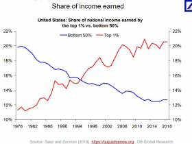 Denn wer hat nicht schon solche Charts gesehen, die die enorme Divergenz der Einnahmen von Amerikas Top 1% auf Kosten der Mittel- und Unterschicht zeigen: